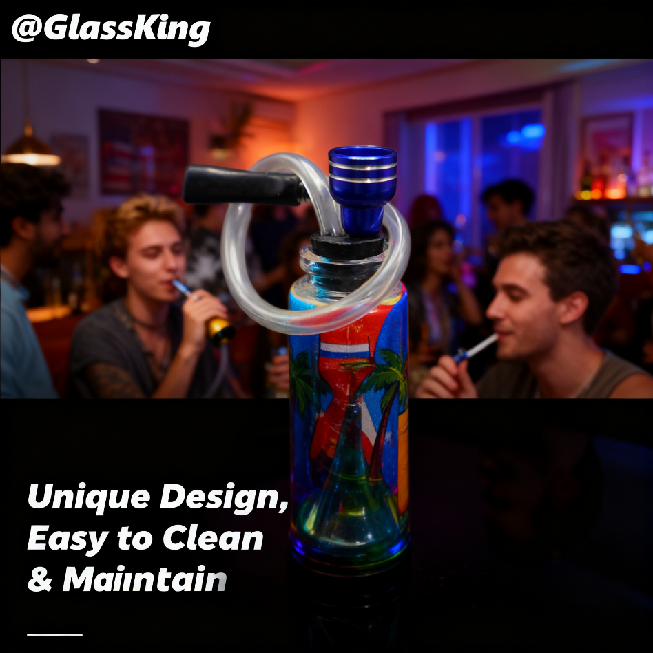 - Let the cool sea breeze and joyful cartoon waves sweep over your senses! The GlassKing 045 Series cartoon beach-themed hookah features summer elements like turquoise seas, blue skies, and surfboards, adorned in exquisite hand-painted cartoon style across the vessel. Each piece is a unique miniature work of art—more than just a smoking tool, it's a trendy centerpiece that lights up your tabletop. Its arrival signals the start of the party.